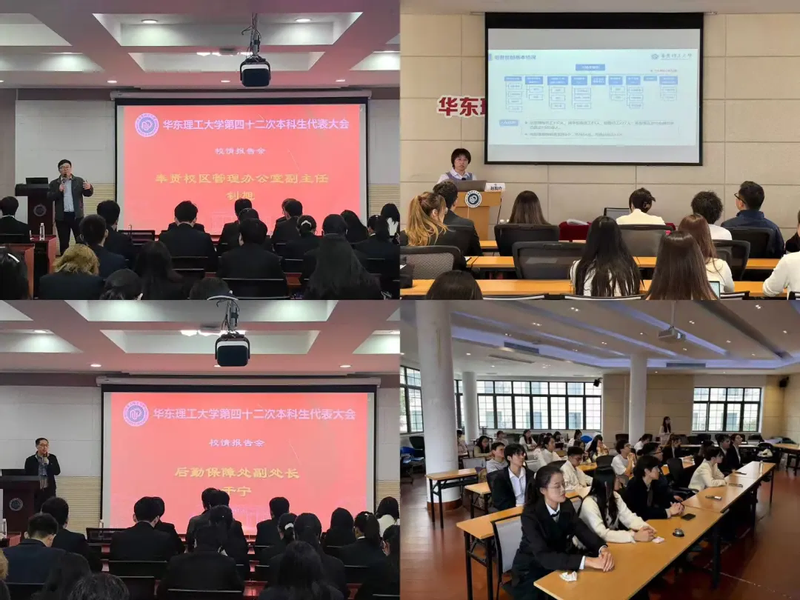 此次学生代表大会和研究生代表大会召开前夕,还组织开展了“花梨桥”系列校情报告会暨候选人与学生代表见面会。会上,奉贤校区管理委员会办公室副主任钊旭、后勤党委副书记兼后勤保障处副处长赵俊玲、后勤保障处副处长于宁等相关职能部处老师和学生代表们在线下进行了沟通交流,介绍学校相关情况,回应同学们关心的问题。
